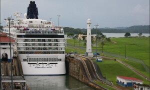 As a part of the demonstration of marine satellite navigation system, I spent a whole day onboard the cruise liner Celebrity Infinity, during its passage through the Panama Canal. In the early morning, the ship entered the canal from the Pacific Ocean and, at slow speed, headed toward the Atlantic Ocean.