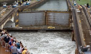Both oceans are known to be at the same level, but the ferry across the channel takes longer because most of the time is spent on passing through the locks. First, the lock system lifts the ship to a height of 311 feet (95 meters) above sea level into the artificial lake, where the ship sails for a few tens of kilometers, and then another lock system lowers the ship back into the ocean.